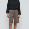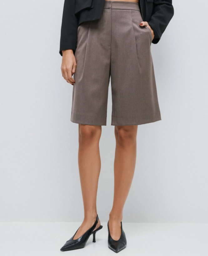 Ψηλόμεση βερμούδα με πιέτες και πλαϊνές τσέπες. Διαθέτει κλείσιμο με φερμουάρ μπροστά και διακοσμητικές τσέπες με ρέλι στο πίσω μέρος. Ιδανική επιλογή για σύγχρονα και κομψά office looks.