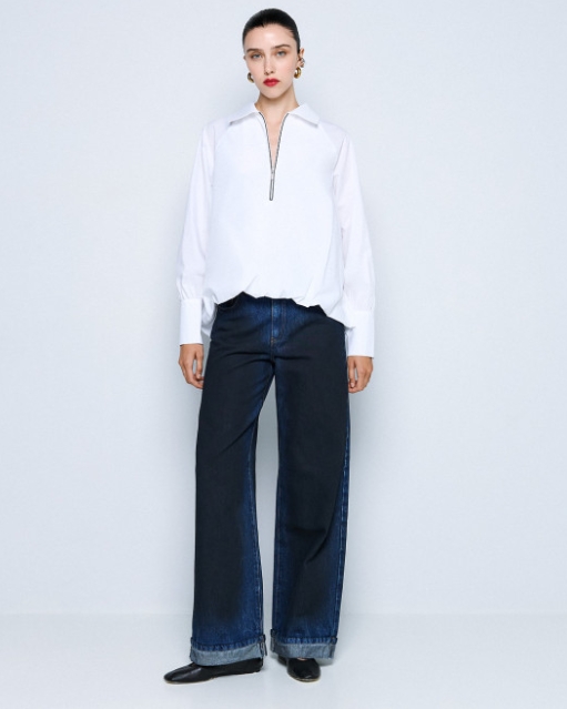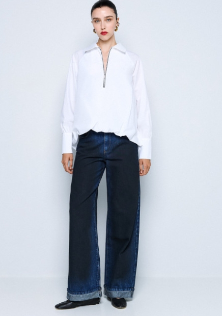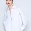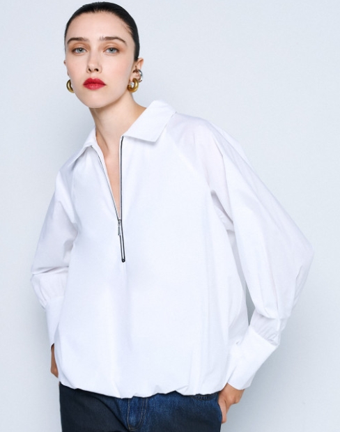 Μακρυμάνικη μπλούζα με γιακά και άνοιγμα με φερμουάρ μπροστά. Διαθέτει ασύμμετρο κόψιμο και balloon τελείωμα. Επιλέξτε τη για ξεχωριστές εμφανίσεις.