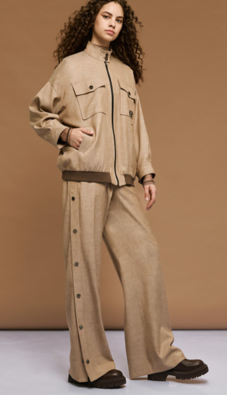 Ψηλόμεσο παντελόνι με πλαϊνές τσέπες και θηλύκια για ζώνη. Διαθέτει ιδιαίτερα πλαϊνά ανοίγματα με τρουκ. Συνδυάστε με το αντίστοιχο τζάκετ από τη συλλογή μας για μοντέρνες και ολοκληρωμένες εμφανίσεις.