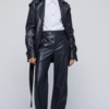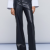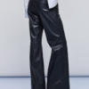 Παντελόνι καμπάνα όψης δέρματος με πλαϊνές τσέπες και θηλύκια ζώνης στη μέση. Διαθέτει διακοσμητικές ραφές και κλείσιμο με κουμπί και φερμουάρ μπροστά. Επιλέξτε το για all-day εμφανίσεις που ξεχωρίζουν.