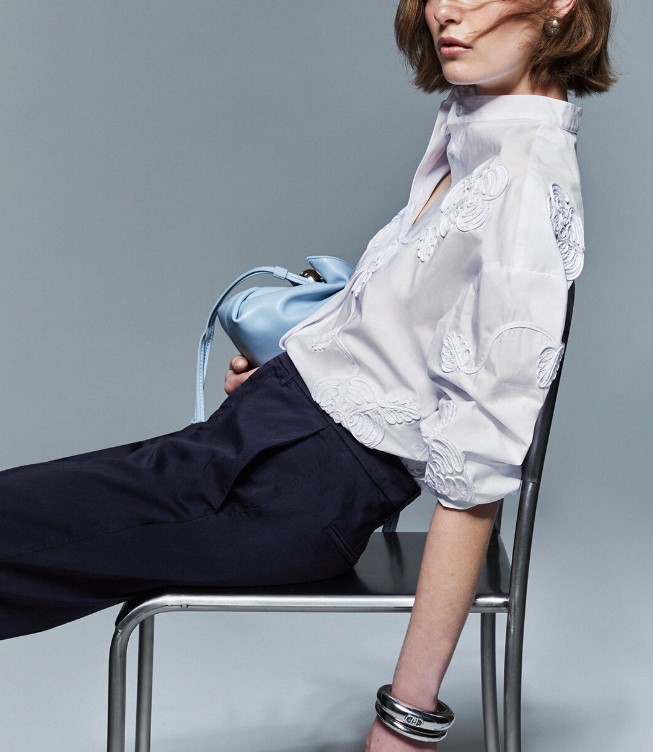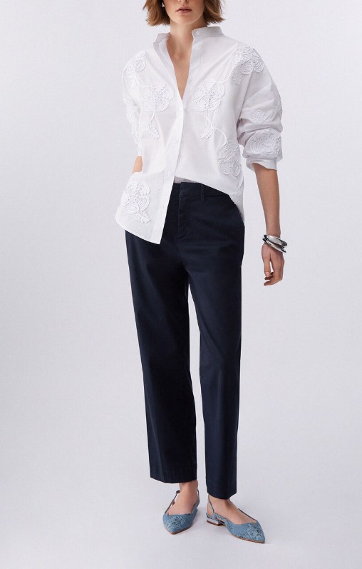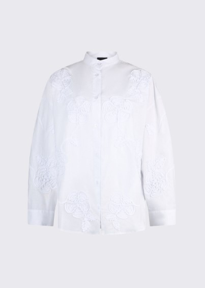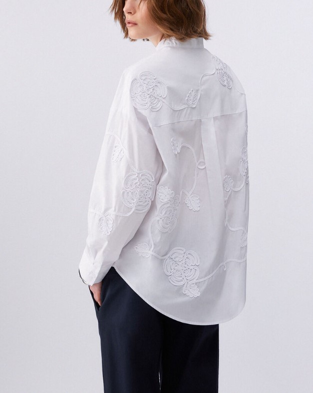 Λευκό σε λευκό, αλλά οτιδήποτε άλλο εκτός από απλό. Αυτό το πουκάμισο με κέντημα cornelly μεταμορφώνει την επιφάνεια σε ένα παιχνίδι με σχεδόν γλυπτά ανάγλυφα. Συνδυάστε το με τζιν ή ψηλόμεσο παντελόνι για μια εκλεπτυσμένη καθημερινή εμφάνιση.