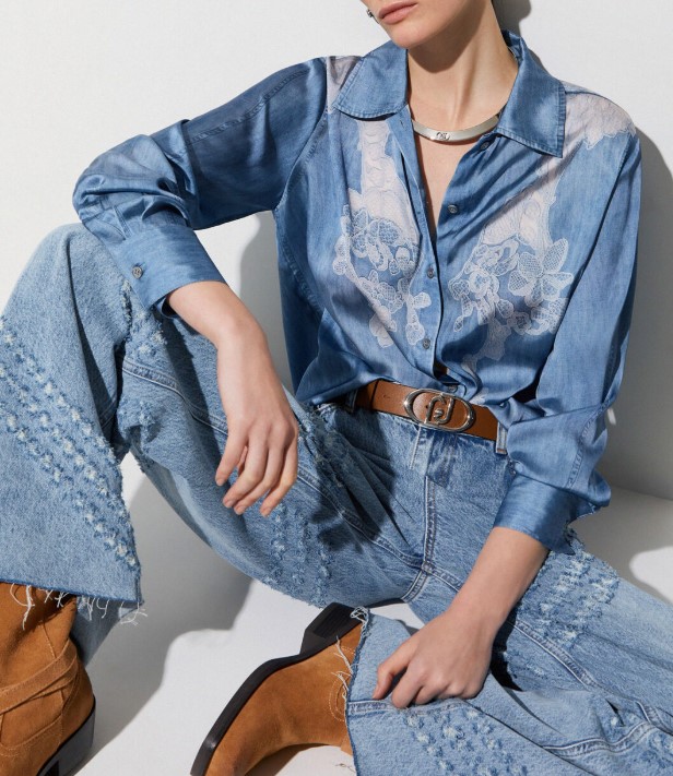 Φρέσκο ​​& Ελκυστικό. Αυτό το πουκάμισο επαναπροσδιορίζει την έννοια της καθημερινής χρήσης με ρευστό σατέν που χαρακτηρίζεται από ψηφιακή εκτύπωση με εφέ τζιν. Συνδυάστε το με απαλά εφαρμοστά παντελόνια και τσάντες για μια ομοιόμορφη εμφάνιση. Πουκάμισο από ρευστό ύφασμα Ψηφιακή εκτύπωση με εφέ τζιν Κλείσιμο με κουμπιά