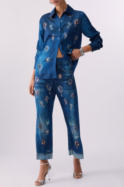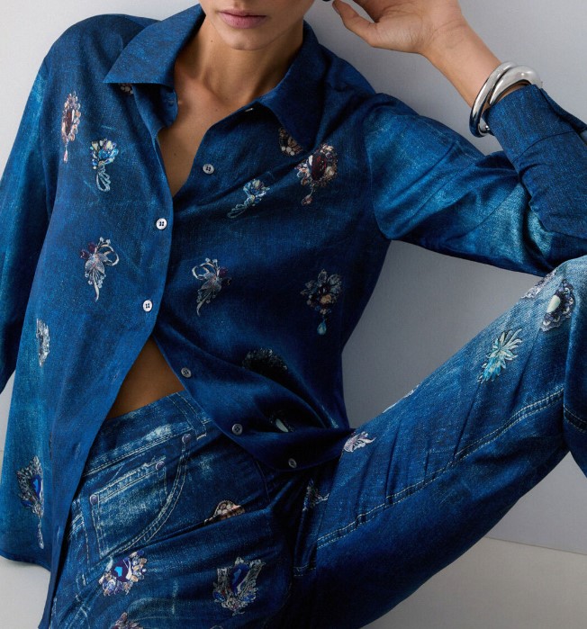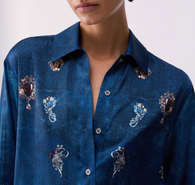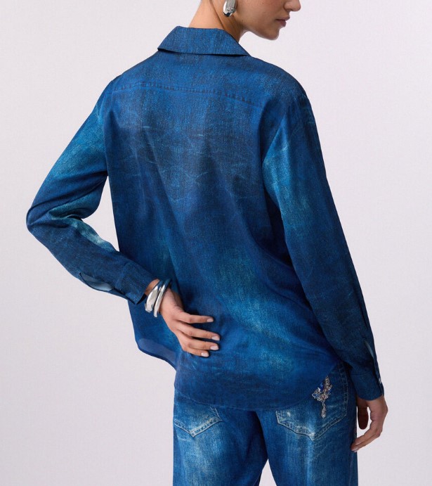 Φρέσκο & Ελκυστικό. Αυτό το πουκάμισο επαναπροσδιορίζει την έννοια της καθημερινής χρήσης με ρευστό σατέν που χαρακτηρίζεται από ψηφιακή εκτύπωση με εφέ τζιν. Συνδυάστε το με απαλά εφαρμοστά παντελόνια και τσάντες για μια ομοιόμορφη εμφάνιση. Πουκάμισο από ρευστό ύφασμα Ψηφιακή εκτύπωση με εφέ τζιν Κλείσιμο με κουμπιά