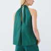 Τοπ από ποπλίνα με halter λαιμόκοψη και λεπτομέρειες από σούρες. Διαθέτει μεταλλική λεπτομέρεια που κουμπώνει στον λαιμό και άνοιγμα στο τελείωμα πίσω. Συνδυάστε το με το ανάλογο παντελόνι.