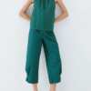 Τοπ από ποπλίνα με halter λαιμόκοψη και λεπτομέρειες από σούρες. Διαθέτει μεταλλική λεπτομέρεια που κουμπώνει στον λαιμό και άνοιγμα στο τελείωμα πίσω. Συνδυάστε το με το ανάλογο παντελόνι.