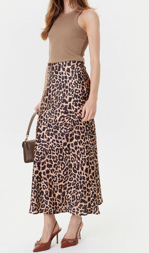 Γυναικεία μακριά σατέν φούστα, σε εφαρμοστή γραμμή, με κανονική μέση και animal print μοτίβο. (Σύνθεση: 96% Πολυεστέρας, 4% Spandex/Ελαστάνη)