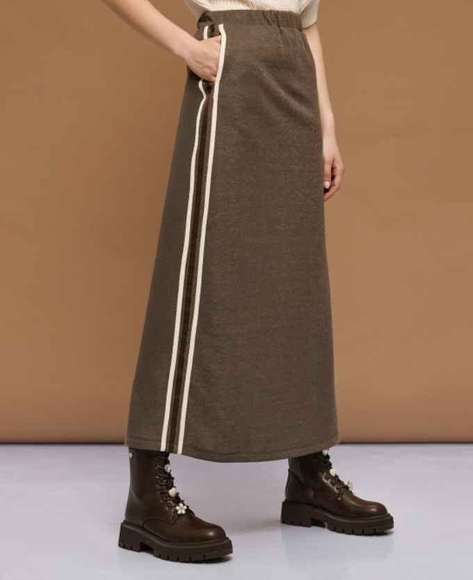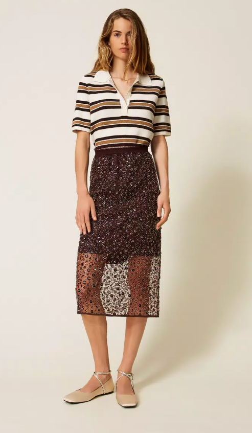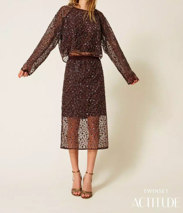 Μάξι φούστα από δαντέλα με ελαστική μέση και αποσπώμενο σορτς-μεσοφόρι. Αποτελεί ιδανική επιλογή για κομψές statement εμφανίσεις.