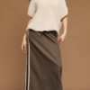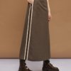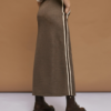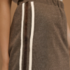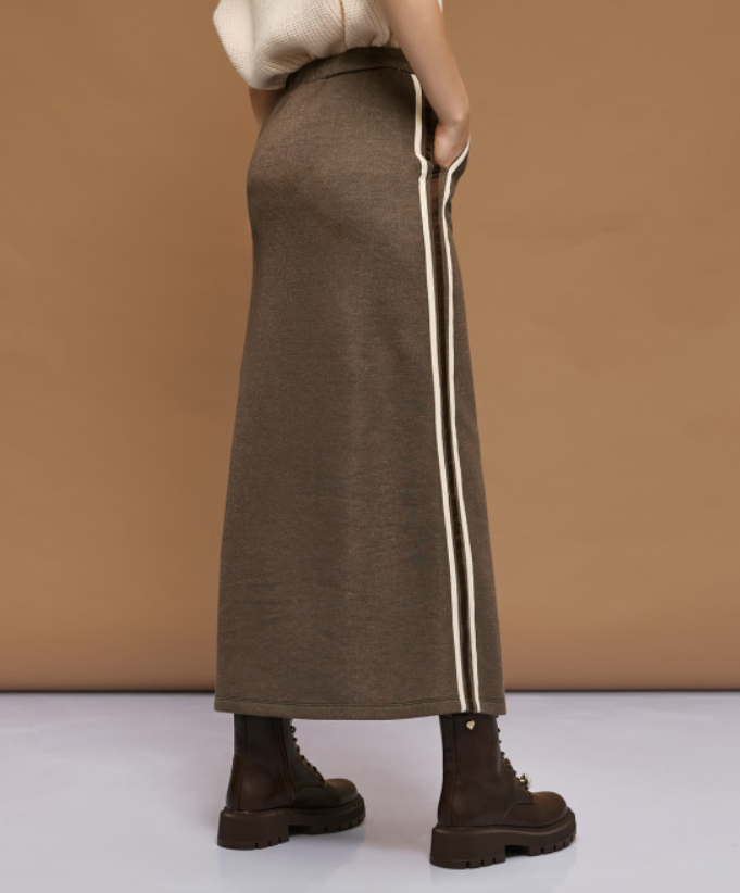 Μίντι φούστα με ελαστική μέση και ριγέ φάσες στα πλαϊνά. Διαθέτει πλαϊνές τσέπες και διακριτικές λεπτομέρειες από μεταλλιζέ κλωστές. Συνδυάστε με την αντίστοιχη μπλούζα από τη συλλογή μας για κομψές και άνετες εμφανίσεις.