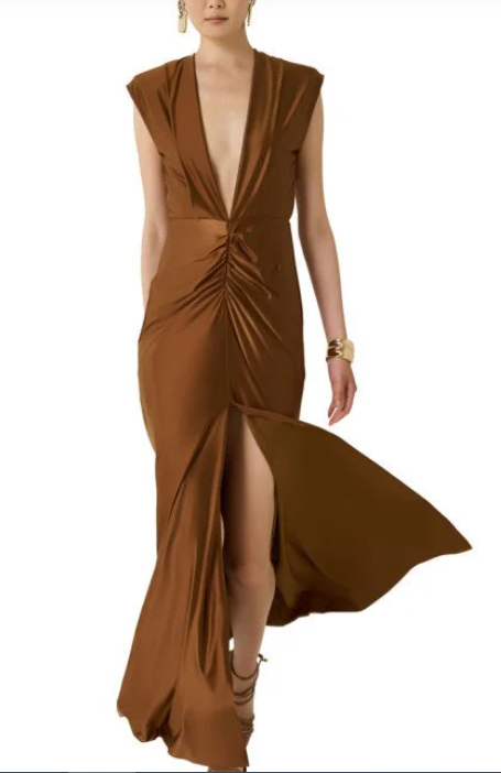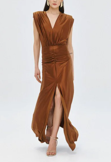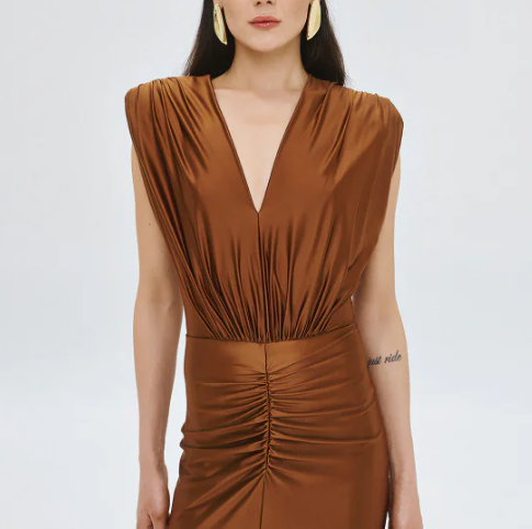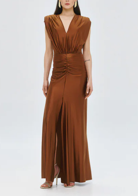 Φόρεμα μάξι με V και σούρες ACCESS/63-3333-124