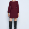 Φόρεμα μίνι με μακριά φαρδιά μανίκια. Διαθέτει ζώνη και χαμόγελο λαιμόκοψη. Επιλέξτε το για στιλάτες εμφανίσεις.