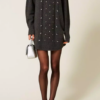 Μίντι εμπριμέ φόρεμα από τούλι με ενσωματωμένη φόδρα και σούρες. Διαθέτει μακριά μανίκια και ψηλό λαιμό. Αποτελεί ιδανική επιλογή για σύγχρονα και στιλάτα looks.