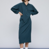 Μακρύ φόρεμα με αποσπώμενη δετή ζώνη. Διαθέτει γιακά και άνοιγμα με κουμπιά μπροστά. Επιλέξτε το για κομψές εμφανίσεις όλη μέρα.