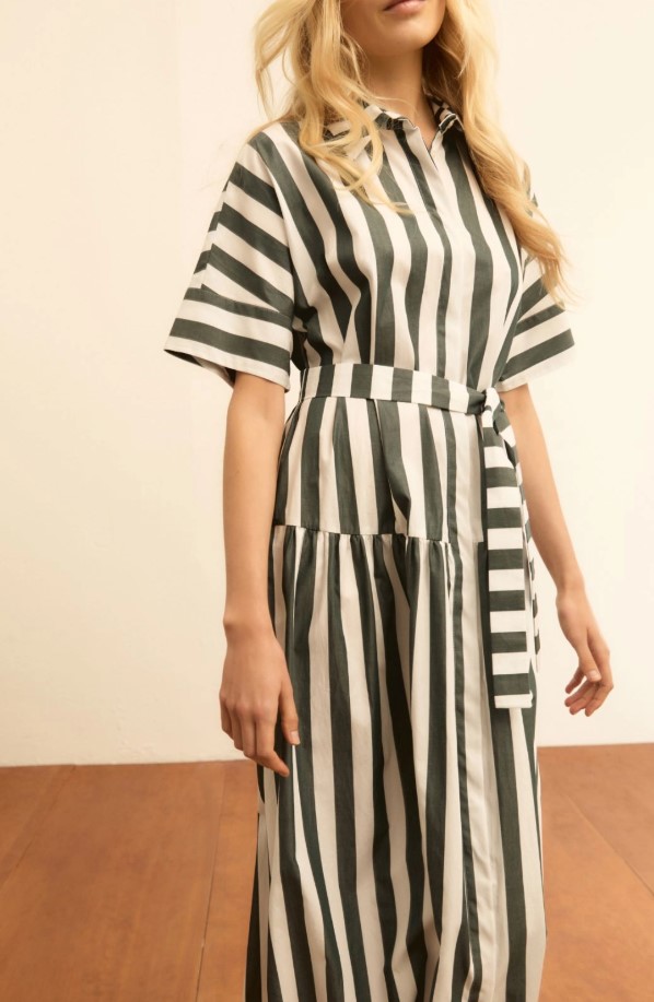 Φόρεμα πουκάμισο με βολάν σκούρο πράσινο EMME MARELLA/EMMFAUNA