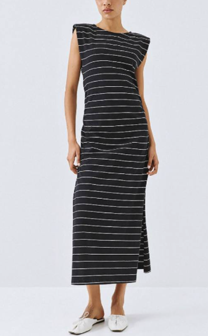 Φόρεμα ριγέ με σούρα στη μέση και βάτα ACCESS/63-34356-672