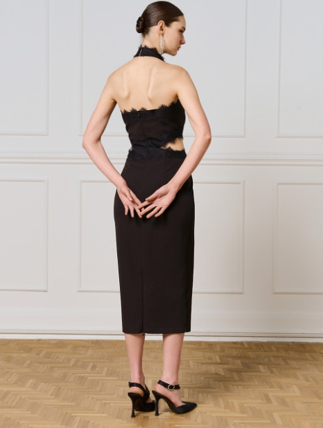 Μίντι φόρεμα με ανοίγματα στη μέση. Διαθέτει ιδιαίτερες λεπτομέρειες από δαντέλα. Επιλέξτε το για κομψές occasion εμφανίσεις.