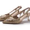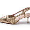 Πλεκτό slingback με μυτερή μύτη, εντυπωσιακό τριγωνικό μοτίφ από στρας στην άκρη, λεπτό τακούνι και ρυθμιζόμενο λουράκι αστραγάλου με πόρπη