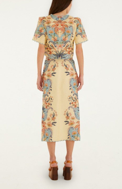 Butter yellow boho beauty linen midi skirt FARM RIO/348847