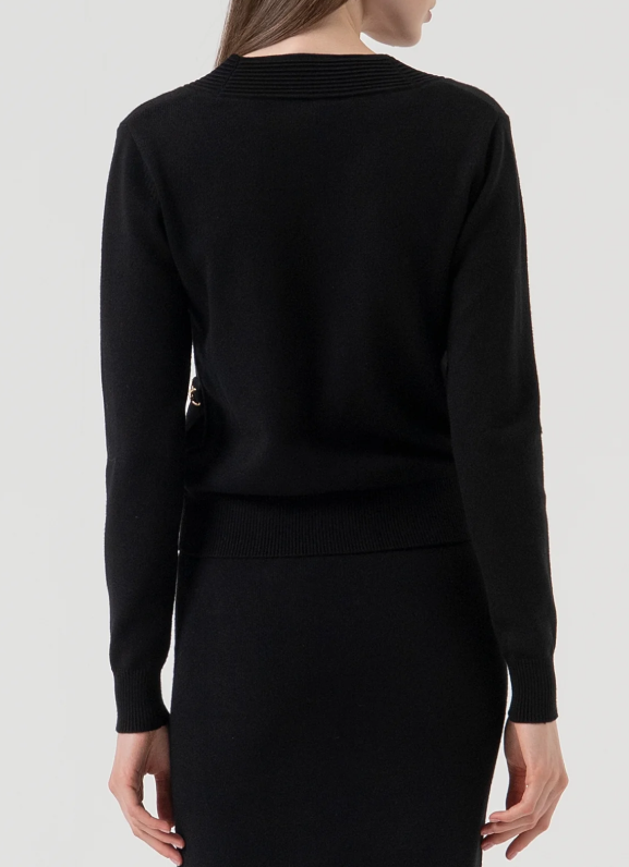 Cardigan regular fit double breasted. V-neck drop, central buttons for opening, patch pockets and long sleeves