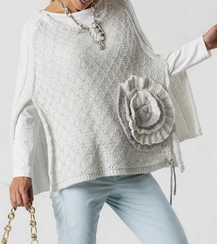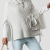 Cream and silver knit cape with maxi flower ELISA CAVALETTI