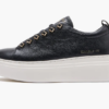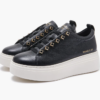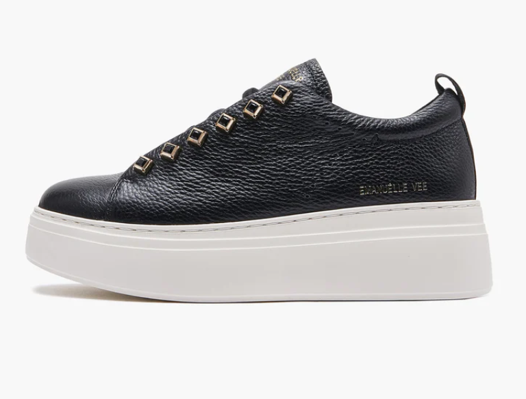 Tumbled leather box sneaker with rhinestone details and lightweight EVA sole.