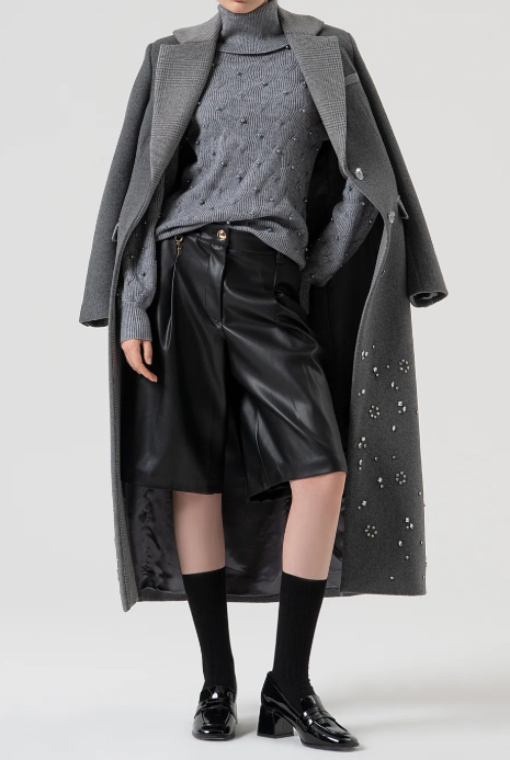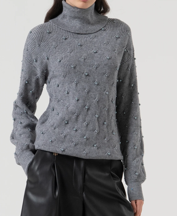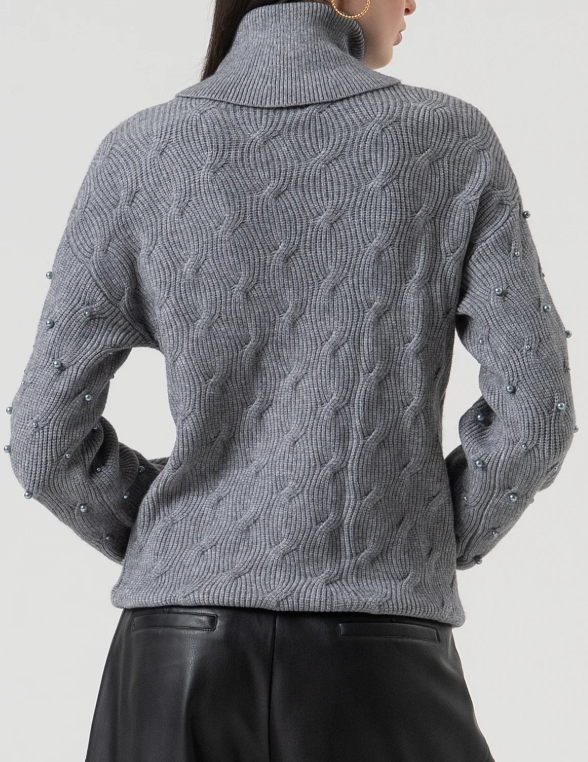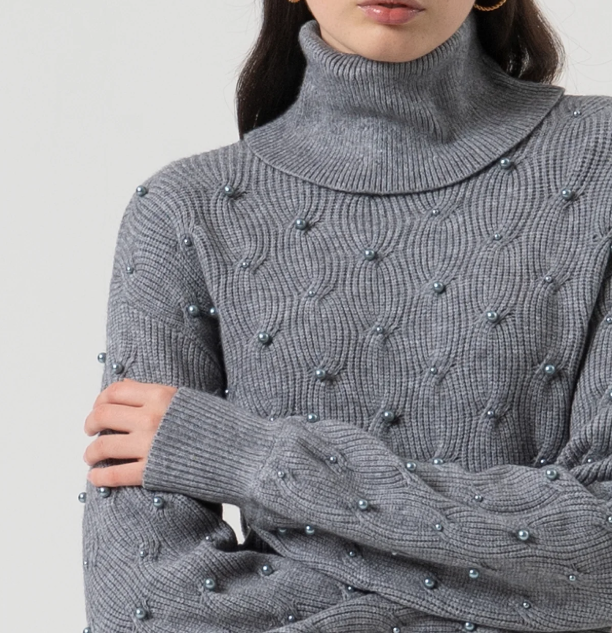 Knitwear regular fit with plaits and pearls. High neck and long sleeves