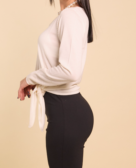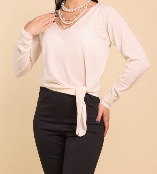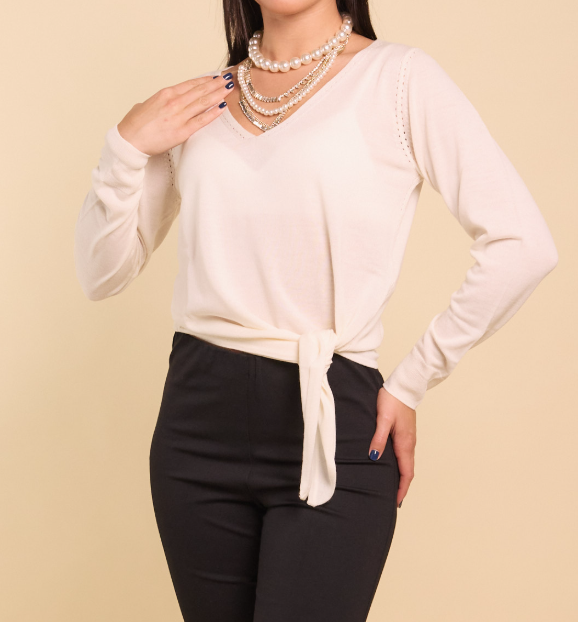 MAGLIA SCOLLO A V CON COLLANA AMOVIBILE E ANNODATA AL FONDO