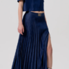 Long flare skirt with plissè effect- High waist and vent at the front