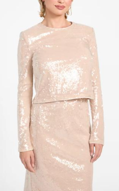 Long sleeve sequin blouse for women Lavinia beige GUESS/W6RH84 KD020
