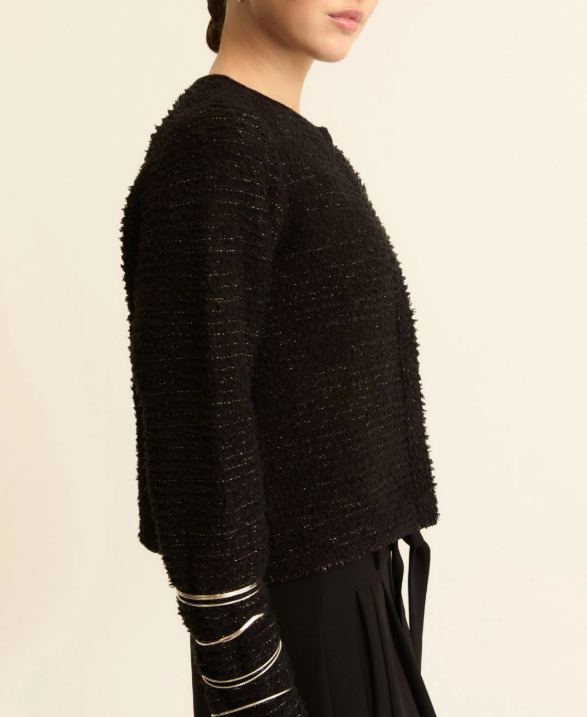 Lurex-adorned short open-front jacket – BLACK emme marella