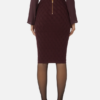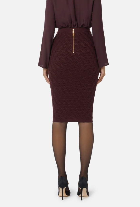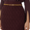 Slim fit knit pencil skirt. With high waist, it stands out for its intricate 3D work that creates a geometric diamond pattern along the entire length. It is embellished with a diamond-shaped chain with logo and rhinestones decorating the waist.