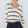 Striped knitted blouse with V-neckline ACCESS/63-8002