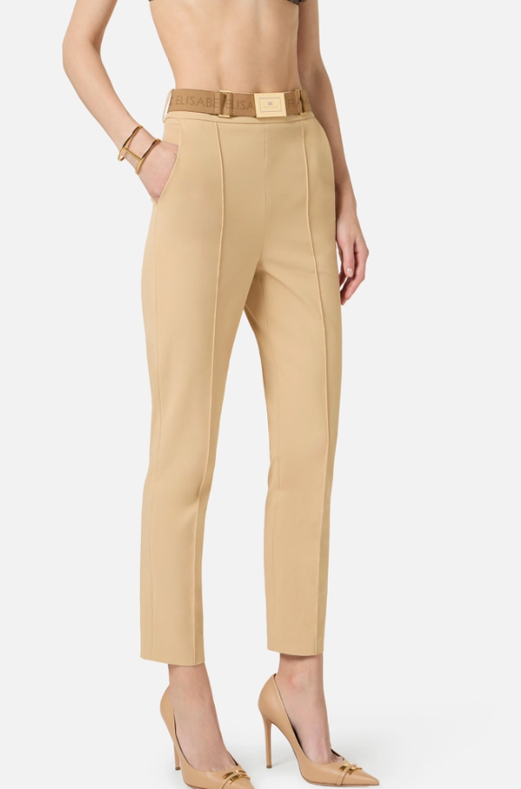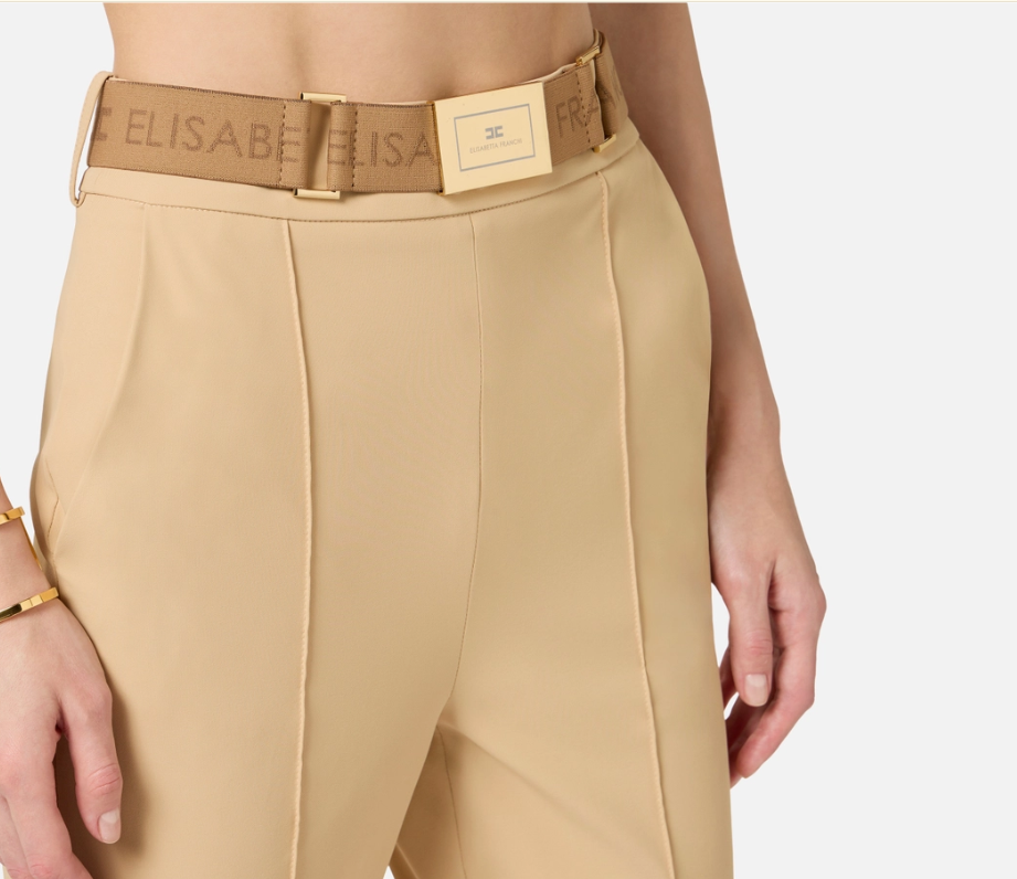 trousersintechnicalbielasticfabricwithbeltbrownelisabettafranchi