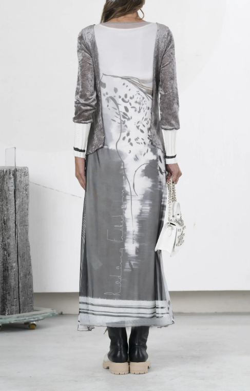 Tulle long dress with “riding freedom” print elisa cavaletti