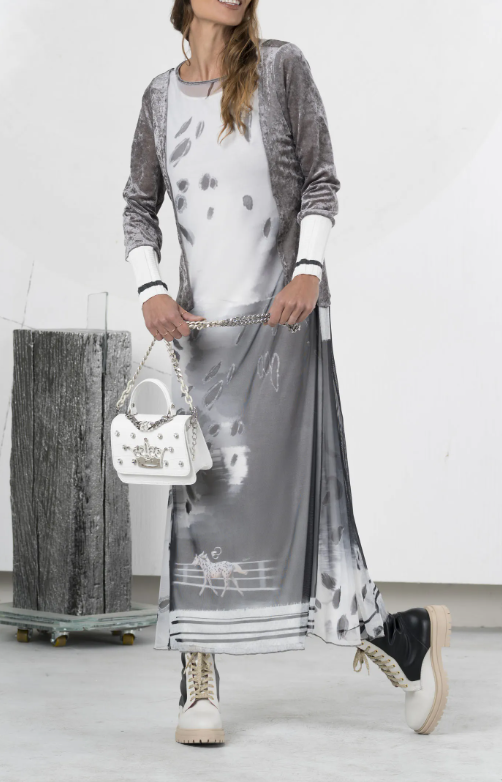 tullelongdresswith“ridingfreedom”print