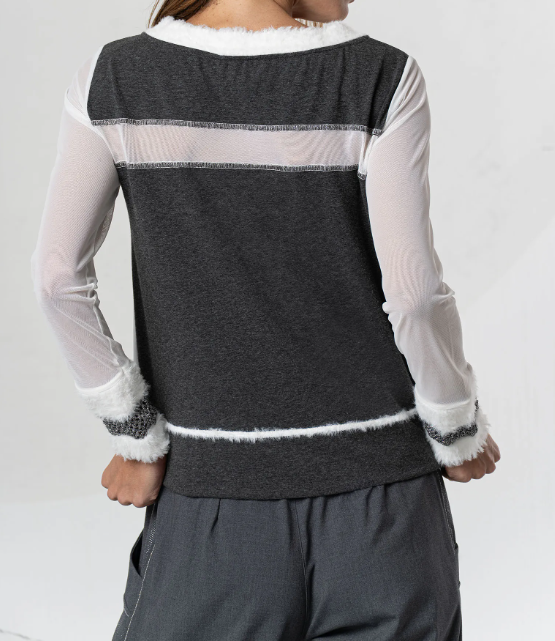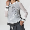 White and gray tulle T-shirt with “Riding freedom” print ELISA CAVALETTI