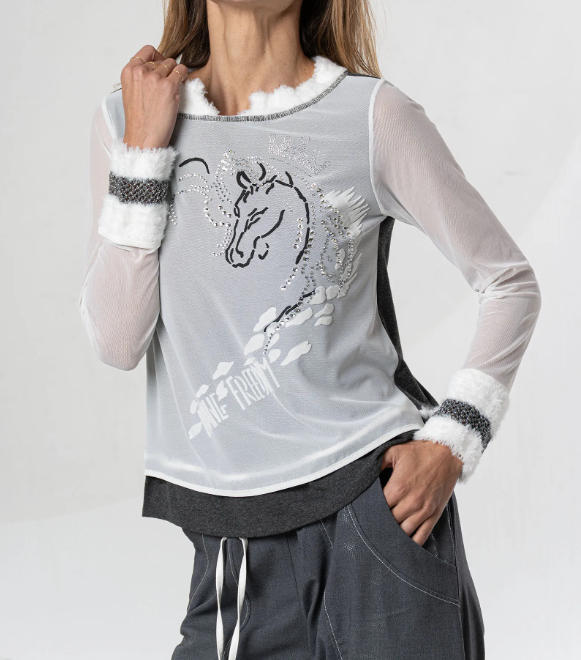 Δώστε πρώτος μία αξιολόγηση “White and gray tulle T-shirt with “Riding freedom” print ELISA CAVALETTI” Ακύρωση απάντησης